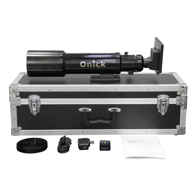 Onick S75 digital anti-shake patrol instrument uses a long-distance telephoto lens to observe the target, and the back-end digital imaging module processes the data. It is a new type of shooting equipment that uses a built-in menu to perform various operations. It realizes the functions of long-distance observation, shooting, and evidence collection. Super-large optical zoom and large-diameter lens can take clear images of distant objects.